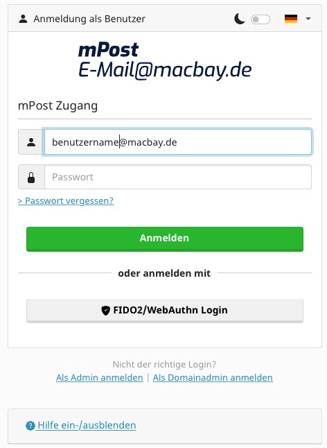 Login: ihr_Benutzername@macbay.de (vorher ihr_Benutzername)