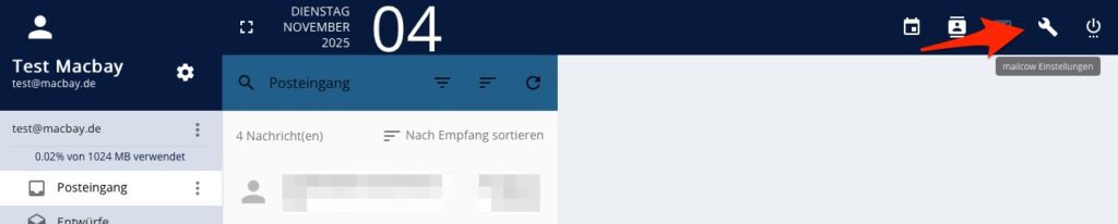 Sie gelangen zu den Einstellungen Ihres Mailaccounts über den Webmailer. Diesen erreichen Sie über mail.macbay.eu
